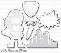 Deze 6-delige set bevat: Superheld 2" x 3 1/8", Cityscape 2 1/2" x 1 1/2", Schild 1 3/8" x 1 3/8", Blast 2" x 1 1/2 ”, Bliksemschicht 5/8" x 1", Masker 1" x 3/8".